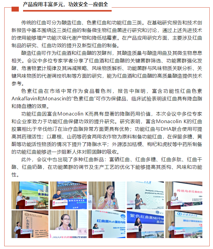 千年紅曲,經(jīng)久不衰,2022東方紅曲國際學(xué)術(shù)研討會在眾多與會專家、企業(yè)家的精彩分享與熱烈討論中圓滿落幕,相信紅曲產(chǎn)業(yè)能夠以科技創(chuàng)新為導(dǎo)向,逐步解決產(chǎn)業(yè)化中的瓶頸問題,也期待將來紅曲的研究與應(yīng)用能夠涉足新領(lǐng)域,開拓新藍(lán)海!